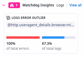 Using the Datadog browser logs SDK it’s possible to capture all those console messages from the code running inside the user’s browser. Once the logs are shipped to Datadog, analysis can be performed to identify possible problems with the code or to better understand how users are interacting with the website. The Datadog log viewer additionally provides automatic insights on the possible source of errors.