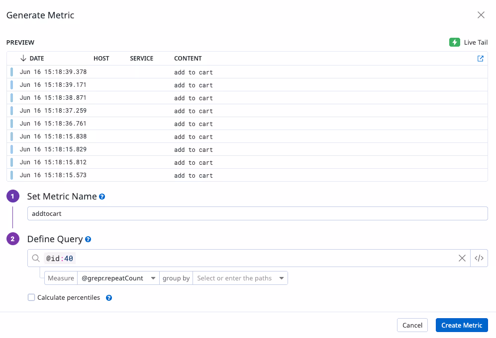 When using the Datadog browser log SDK to track user behaviour you may be concerned that the generated metrics would not be accurate when Grepr filters out 90% of the data. The summary entry sent through by Grepr includes a field for the number of messages covered by the summary thereby keeping your statistics accurate.