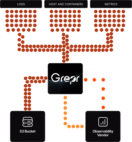 With Grepr the impossible is possible, observability platform costs can be slashed by 90% while maintaining 100% visibility ensuring engineers have all the data they need at their finger tips. Appease the board with cost savings and keep the engineers happy all at the same time with Grepr Intelligent Observability Data Engine.